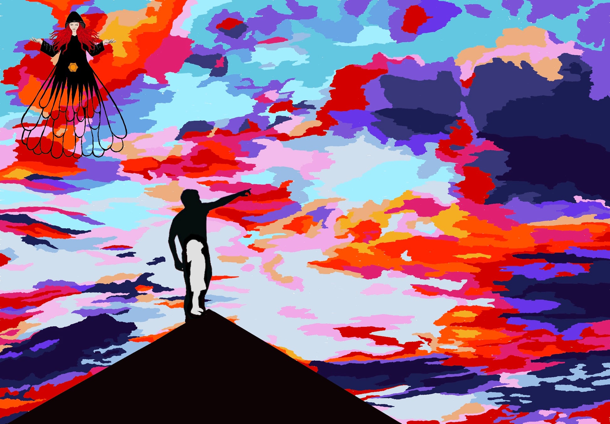 I drew this from a childhood memory of my dad taking me up on the roof when a storm was brewing in the distance. My dad has taught me so many important lessons in my life and I drew this for him.